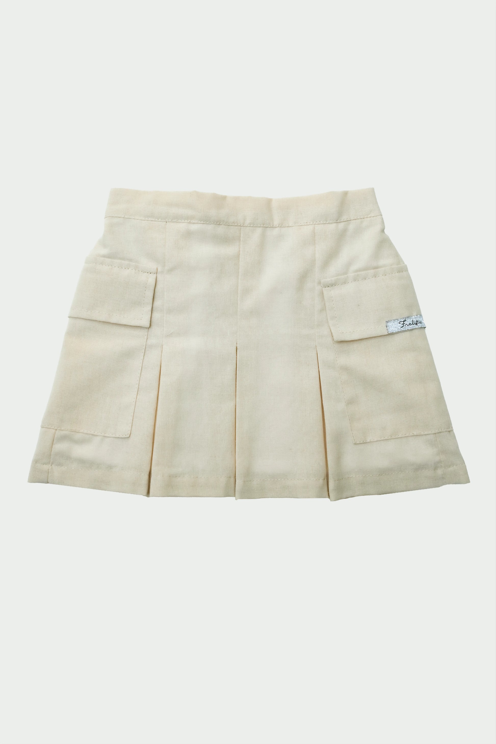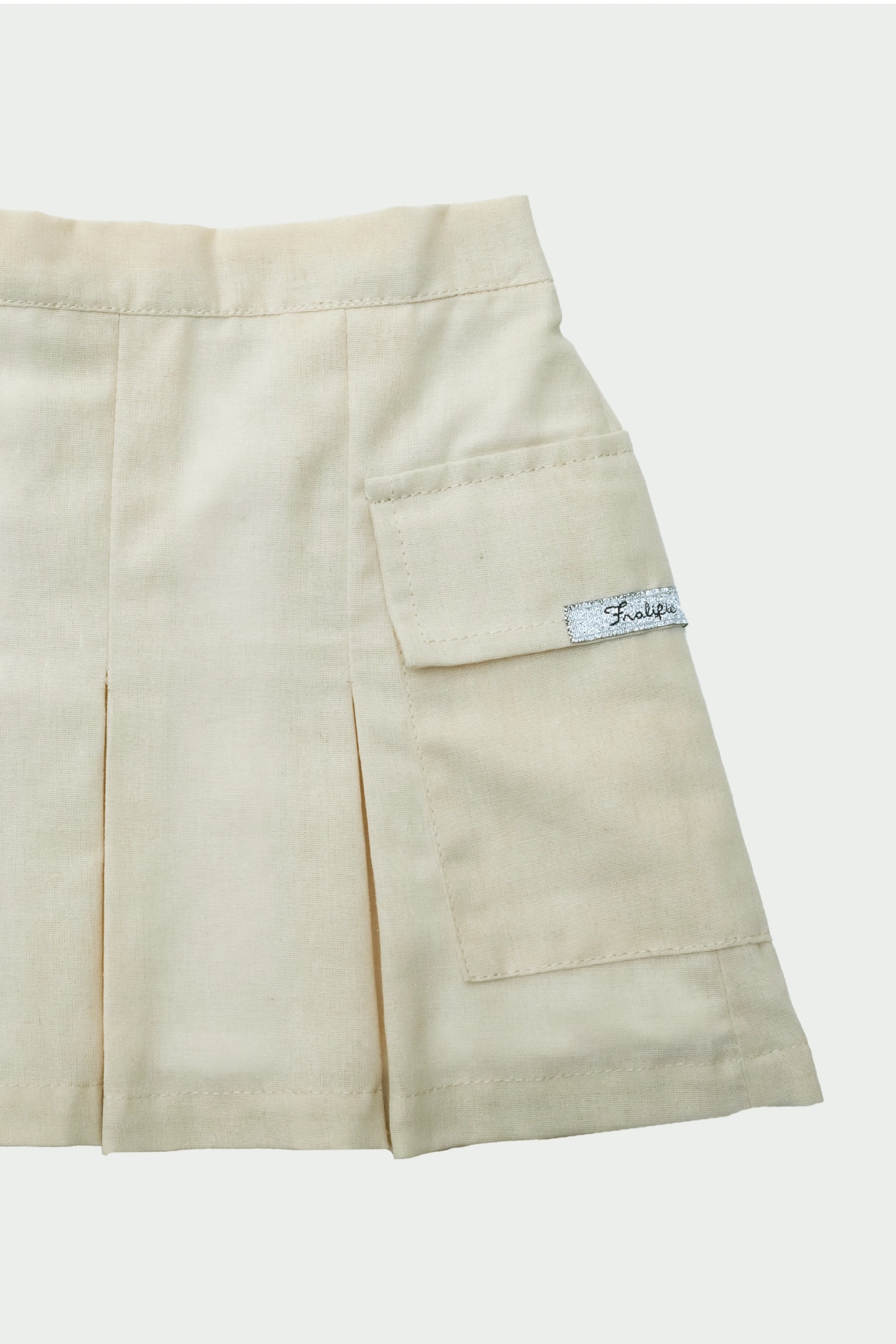 This beige pleated skirt blends classic charm with modern utility.